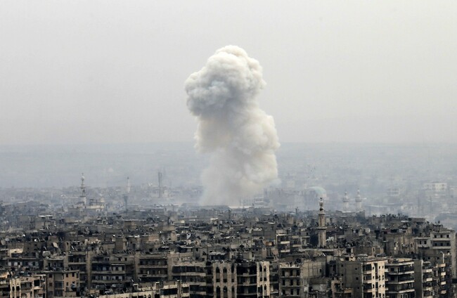 Smoke rises following an air strike on insurgents positions in eastern Aleppo on Monday, Hassan Ammar