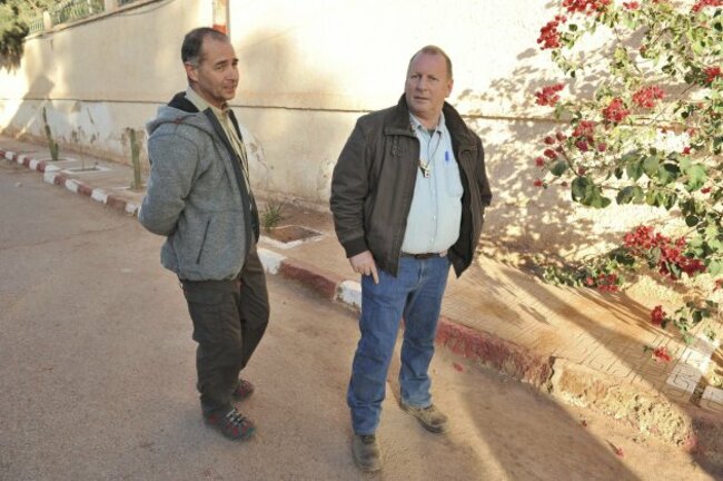 Two British hostages Peter, left, and Alan, right, (no family name available), are seen after being released, in a street of Ain Amenas, near the gas plant where they have been kidnapped by Islamic militants. (Picture: AP Photo/Anis Belghoul).