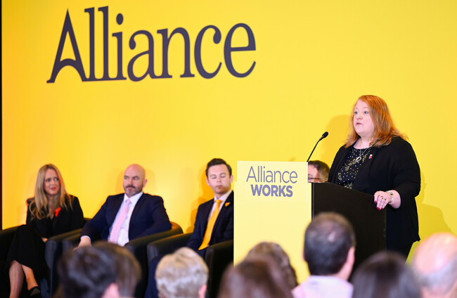 Alliance leader Naomi Long addresses her party's conference this afternoon in Belfast. Alliance Twitter