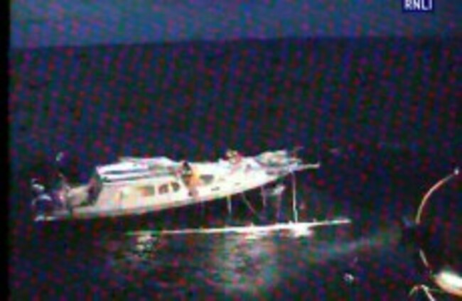 A 100 ft tall ship collided with this yacht this morning, causing substantial damage RNLI