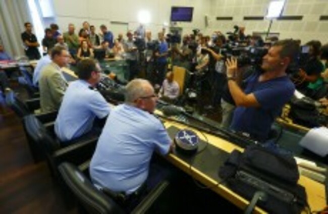 Eric Maillaud (left), the Prosecutor of Annecy holds a press conference in the town in the Haute-Savoie region of south-eastern France earlier today. Chris Ison/PA Wire/Press Association Images
