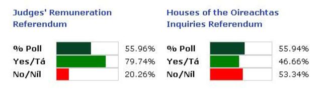 More people voted in the Presidential election than did in the judicial pay referendum or in the Oireachtas inquiries referendum.