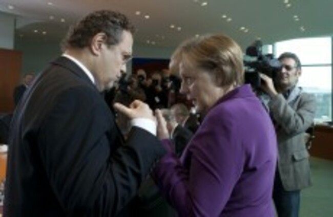 Hans-Peter Friedrich (left) has become the most senior member of Angela Merkel's cabinet to suggest that Greece should leave the eurozone. Markus Schreiber/AP