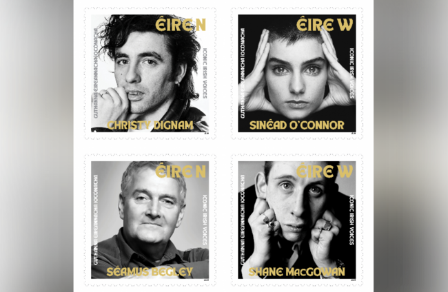 AN POST HAS today unveiled four new stamps honouring the life and music of Séamus Begley, Christy Dignam, Shane MacGowan and Sinéad O’Connor, all of whom died last year.