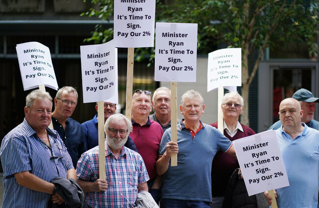The retired workers staged the demonstration outside the Department of Environment, Climate and Communications today over Minister Eamon Ryan’s “failure” to sign off on the increase due to them since January.