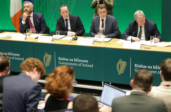 The post-budget housing press conference with journalists in Government Buildings today. Leah Farrell