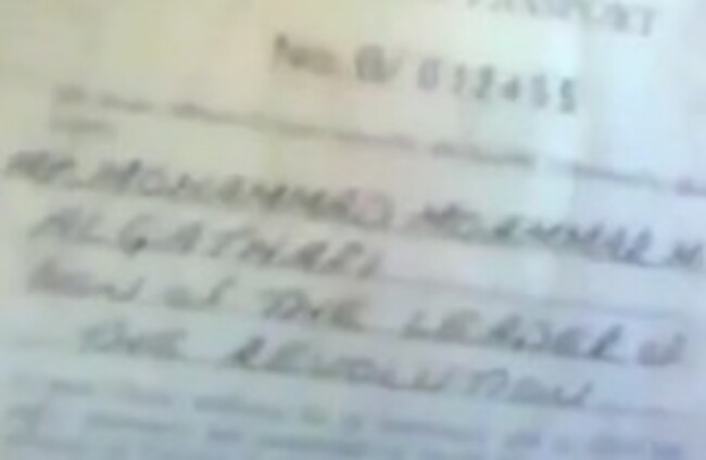 The Libyan Youth Movement uploaded a clip to YouTube yesterday showing the autocrat’s diplomatic passport, which was found when rebels stormed his compound in Bab al-Aziziya.
