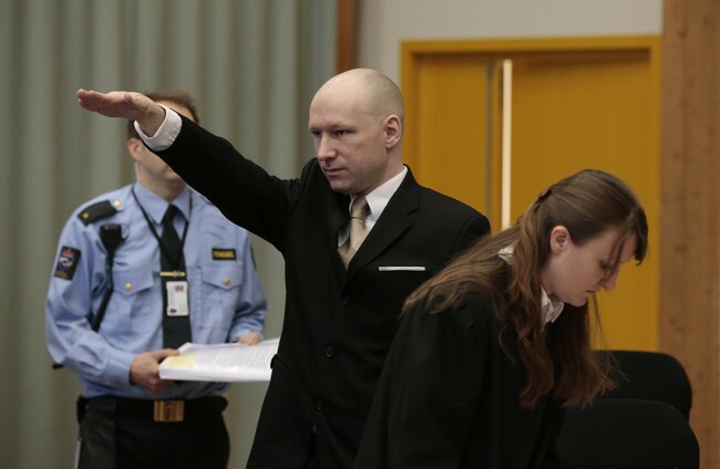 On several occasions during his 2012 trial, Breivik, made a variation of the Nazi salute by holding his closed right fist to his heart and then extending his arm.