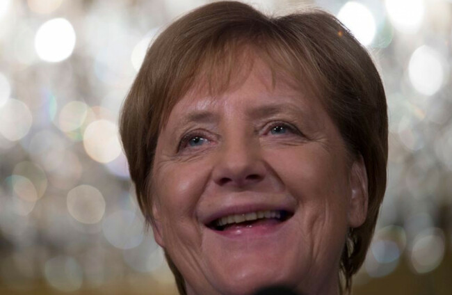 German Chancellor Angela Merkel smiles when answering question today. Peter Dejong/AP/Press Association Images