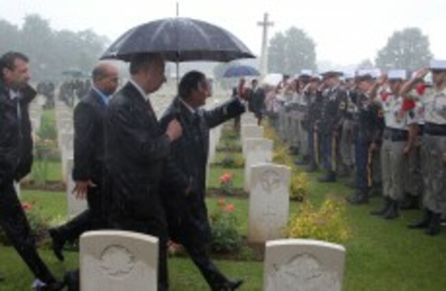 Hollande waves to soldiers at yesterday's ceremony David Vincent/AP/Press Association Images