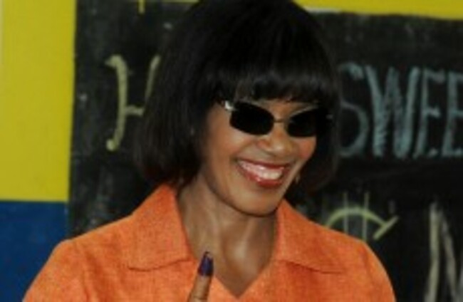 Portia Simpson Miller shows her inked finger after casting her ballot in parliamentary elections in Kingston. Early returns show her in pole position to take office as Prime Minister for a second time. AP Photo/Collin Reid