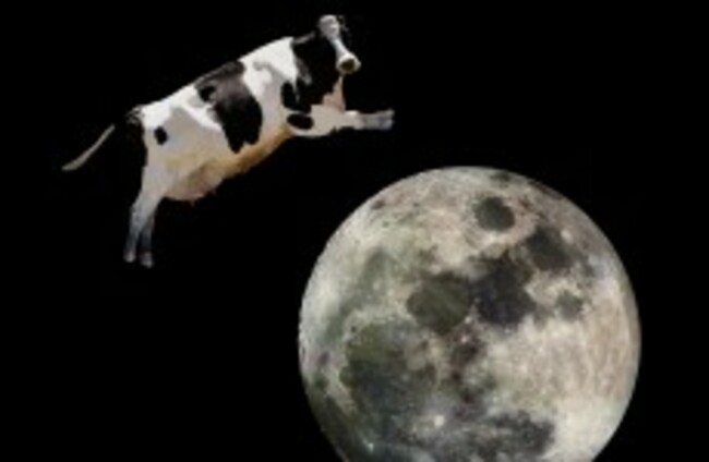 A peek into the future... Cow jumping over the moon. via Shutterstock
