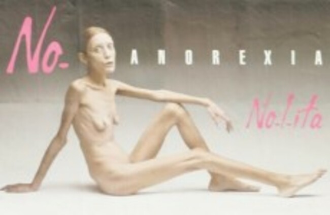 Billboards featuring emaciated Isabelle Caro were plastered across the fashion capital bearing the slogan “No anorexia” as a challenge to an industry that has been accused of perpetuating unhealthy representations of women.