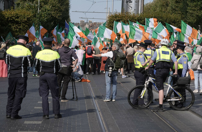 Dozens of gardaí were in the area between the demonstrations to ensure rival protesters are kept apart.