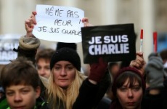 Charlie Hebdo magazine shooting People take part in a solidarity rally in Dublin's city centre, in memory of the victims of terror attacks in Paris. PA Wire / Press Association Images PA Wire / Press Association Images / Press Association Images