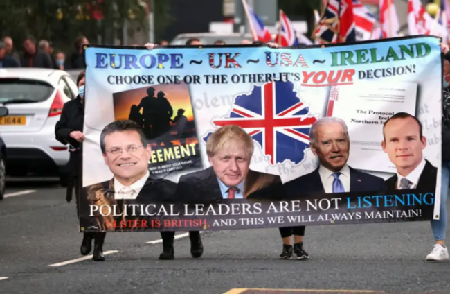 A DEMONSTRATION IN east Belfast has called for an end to the Northern Ireland Protocol.