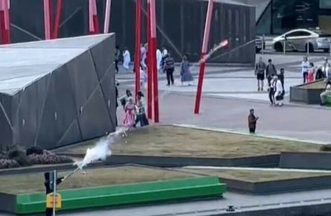 Posted by the account ‘thatguybillosh’, the video shows the fireworks being directed towards the water as dozens of passersby are also seen in the vicinity.