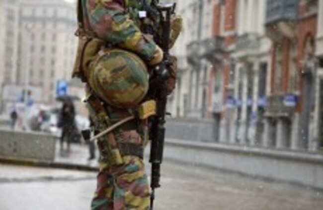 A Belgian soldier patrols in front of EU headquarters in Brussels on Monday. AP/Press Association Images