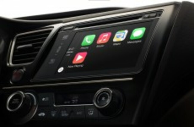 Named CarPlay, the service is built around Siri voice commands, allowing drivers to respond to calls, reply to text messages, and access their music library or Spotify.