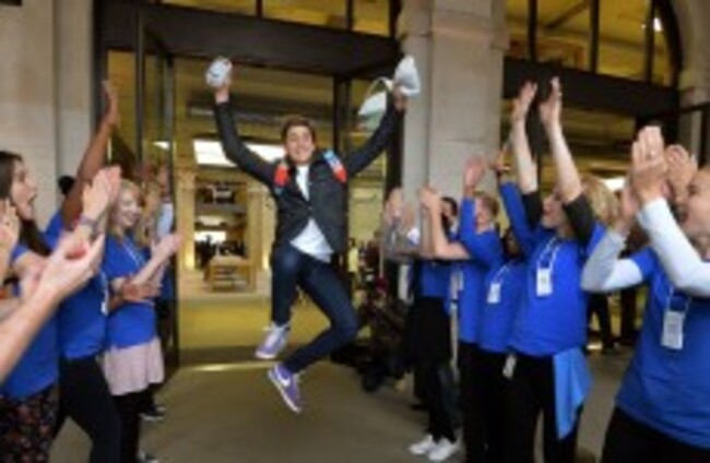 A teenager celebrates after buying a new iPhone at the Apple shop in London John Stillwell/PA Wire