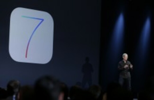 Apple chief executive Tim Cook launches the new iOS 7 at a developers' conference in San Francisco. Eric Risberg/AP