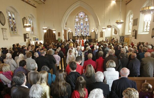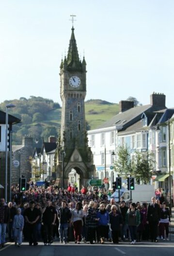 The streets of Machynlleth in Powys were thronged with people making their way to St. Peter’s Church.