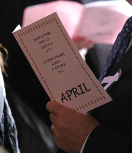 April’s parents were not in attendance at today’s service. Another service was also held at the local leisure centre for rescue workers.
