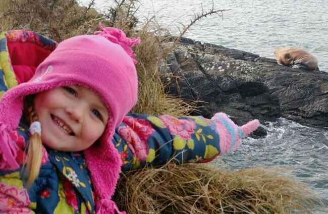 The walrus was spotted by Alan Houlihan and his five-year-old daughter Muireann while they were out walking.