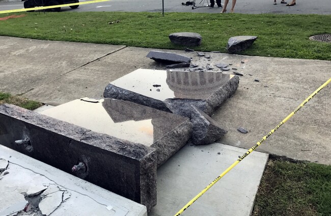 Local media reported that Reed also broke that monument by ramming it with a vehicle.