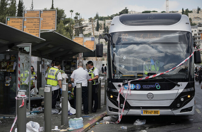 Palestinian gunmen opened fire at a bus stop along a major road in the illegal Israeli settlement of Ramot Alon in occupied East Jerusalem yesterday morning.