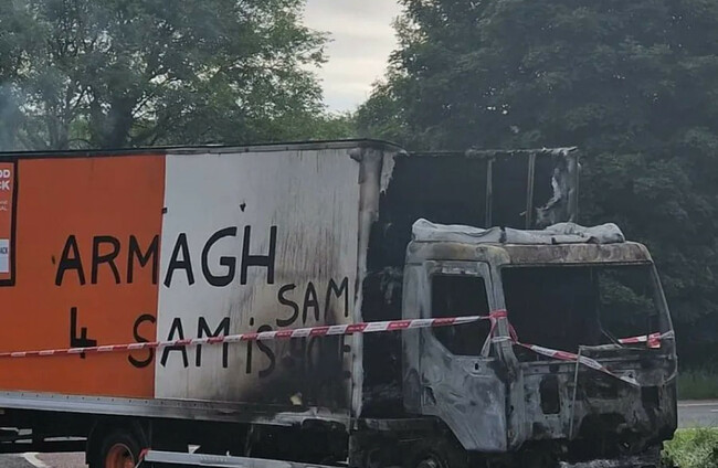 Mullabrack GAA club also commented on the attack, saying that “despite the overnight torching of our signs and flags this will not dampen our spirits as we welcome Sam home”.