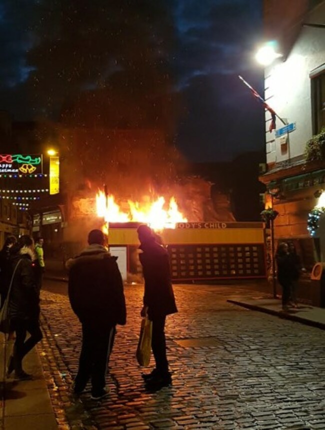 Pictures have circulated showing the artwork, which was unveiled by councillor Mannix Flynn in November last year, on fire.