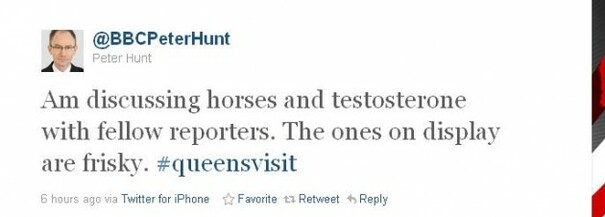 A more fun-filled day today for the British monarch, Twitter notes. But did one overhear a little gaffe from Prince Philip?