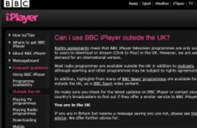 The iPlayer is currently only available to users inside the UK BBC
