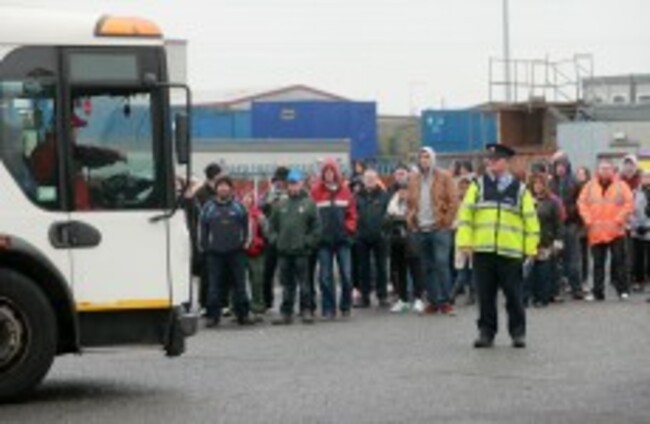 Gardai redirect Greyhound trucks blocked by supporters of the striking workers. Laura Hutton/Photocall Ireland