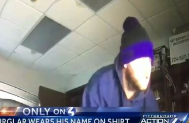 POLICE SAY A suspect had his first name stenciled on a shirt he wore while breaking into a taxi company in Pennsylvania where he used to work.