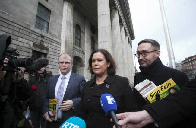 Peadar Toiban, Mary Lou McDonald and Eoin O Broin pictured before the election