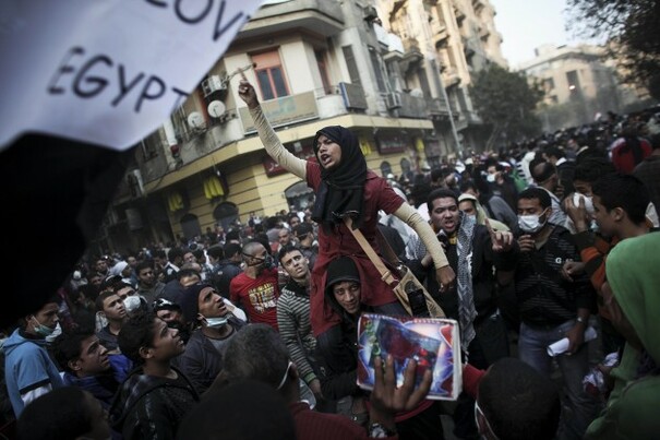 Protesters demonstrate during today's clashes in Cairo. (AP Photo/Tara Todras-Whitehill/PA Images)