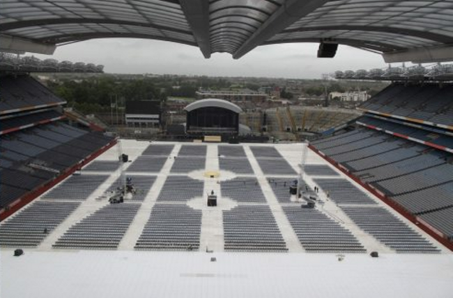 As is customary for non-sporting events in Croker, the playing surface has been covered with a white plastic platform, which sits on small stilts in order to preserve the playing surface underneath.