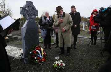 Liam Dinneen, from Skerries, at the grave of his grand uncle Patrick OÕDowd, during a ceremony at Glasnevin cemetery. PA Wire/PA Images