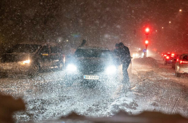 Up to 12 inches of snow fell, trapping the customers and employees when the store in Aalborg closed yesterday.