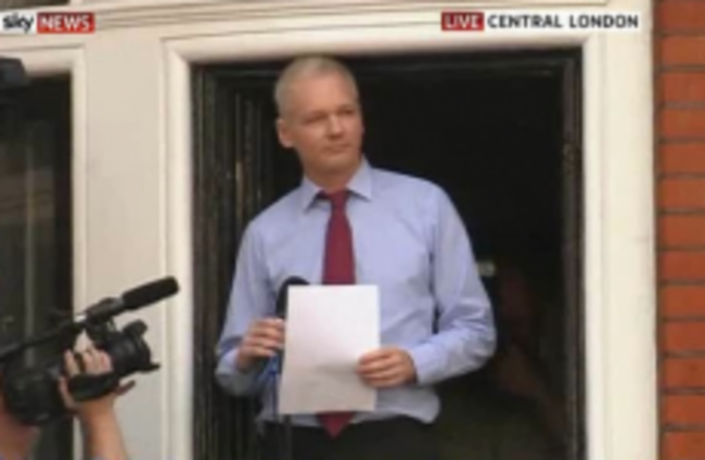 The address from a ground floor balcony window – his first public appearance since losing a UK Supreme Court appeal against extradition to Sweden, where he is wanted over sexual assault allegations – was a deliberately pointed choice of location.