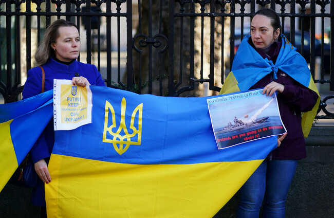 A protest against Russian aggression towards Ukraine outside Leinster House, Dublin, on 27 January. Alamy Stock Photo