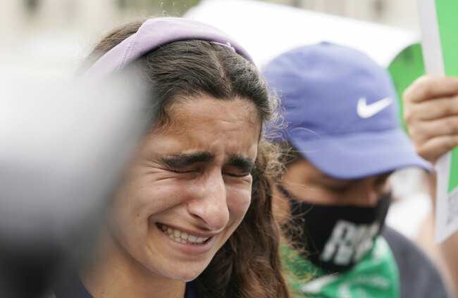 A woman upset about the abortion decision outside the Supreme Court today AP/PA Images