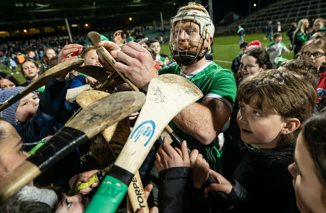 Limerick’s Cian Lynch with fans after the game. James Crombie/INPHO