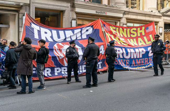 Supporters of former president Donald Trump rally at Trump Tower in New York on 3 April, 2023. Alamy Stock Photo