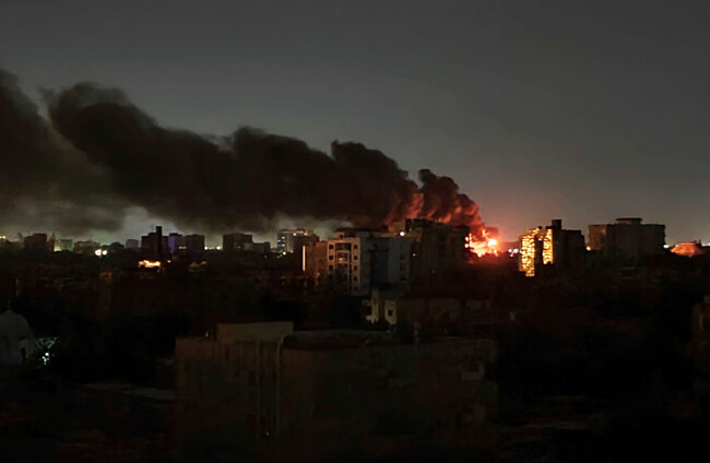 Fire and smoke rises in the city of Khartoum, Sudan. Alamy Stock Photo