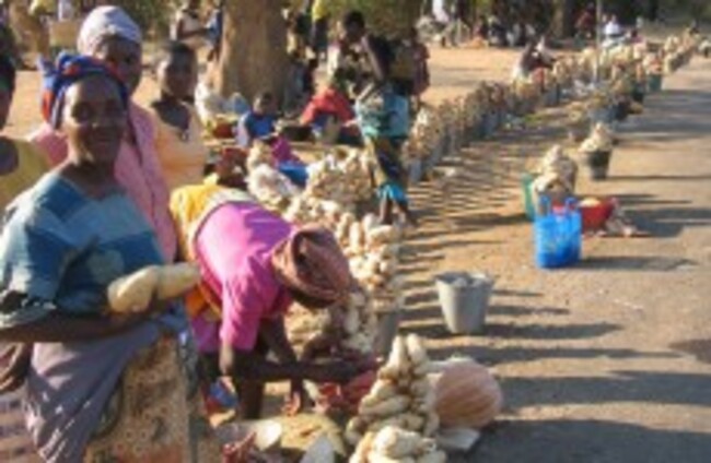 Zambian women sell sweet potatoes from the side of the road near Monz JOSEPH SCHATZ/AP/Press Association Images