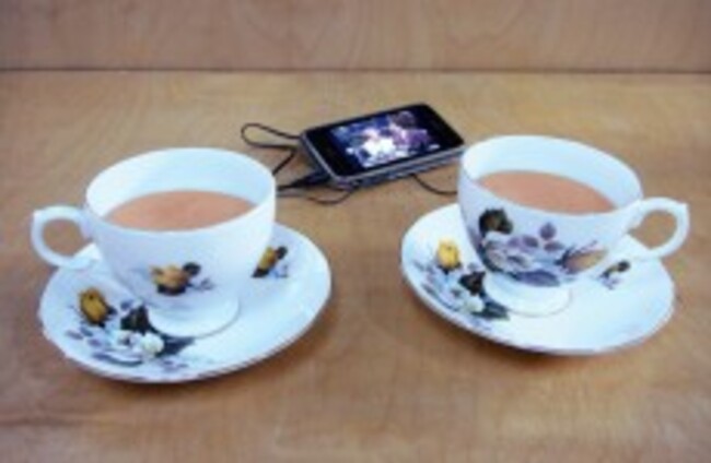 Nicky Hooper's 'Tea and Symphony' is made from portable speakers, tights and china teacups - all of which were bought in a €2 shop. Talbot Gallery