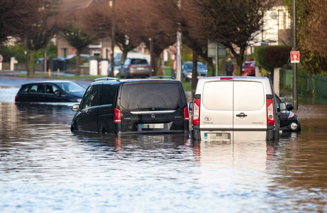 Cars were left submerged in Rathfarnham, Dublin 14 as a result of flooding caused by Storm Chandra this morning.